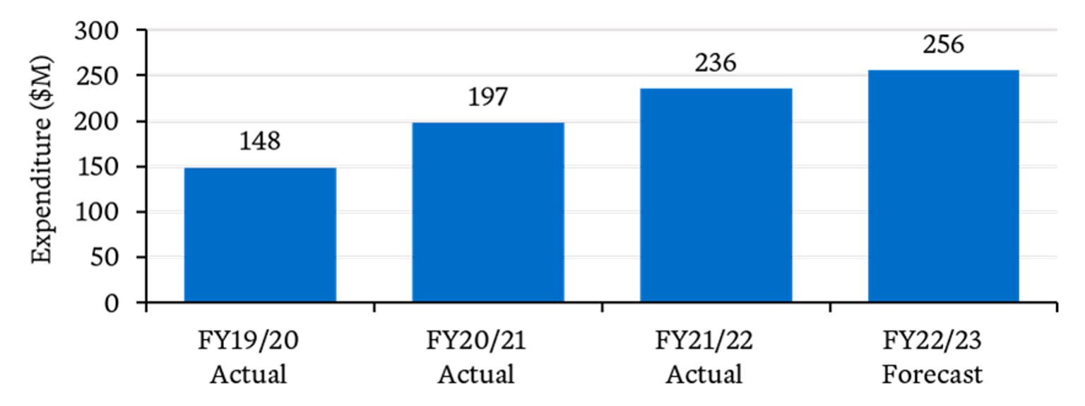 - Targeted expenditure grew from $423M in FY19/20 to $747M in FY22/23.